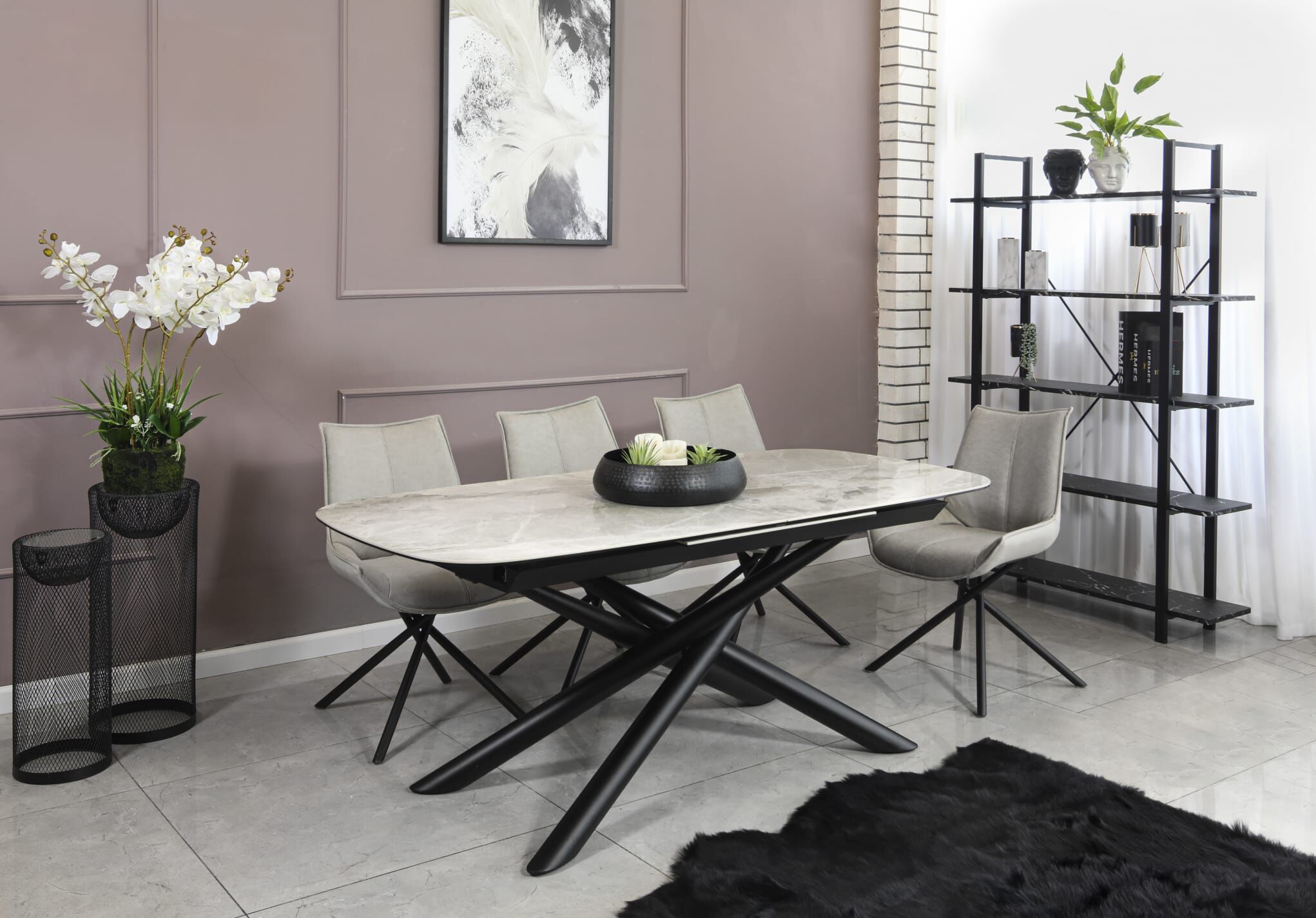 שולחן אוכל קרמיקה בשילוב זכוכית